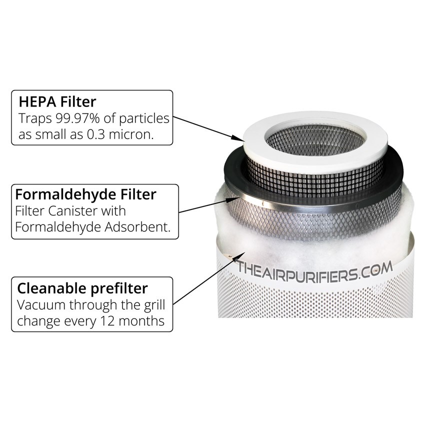 AirPura F400 formaldehyde adsorbent filter canister contains generous amount 8 lbs. of Formaldehyde specially formulated adsorbent to ensure effective removal of Formaldehyde along with VOCs and other toxic chemicals.